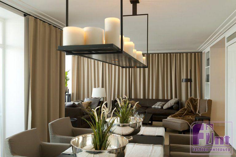Роль своеобразного «якоря» в этом круговом движении играет, пожалуй, самый необычный предмет всего интерьера — светильник дизайнера Кевина Релли. «Я была первой, кто привез эту люстру в Россию, — вспоминает Галина. — До этого никому в голову не приходило везти светильник длиной 2,3 метра». Запатентованную американским дизайнером конструкцию — оригинальный синтез натурального свечного парафина с электрическими лампочками — разместили в совмещенной с гостиной кухней-столовой.
