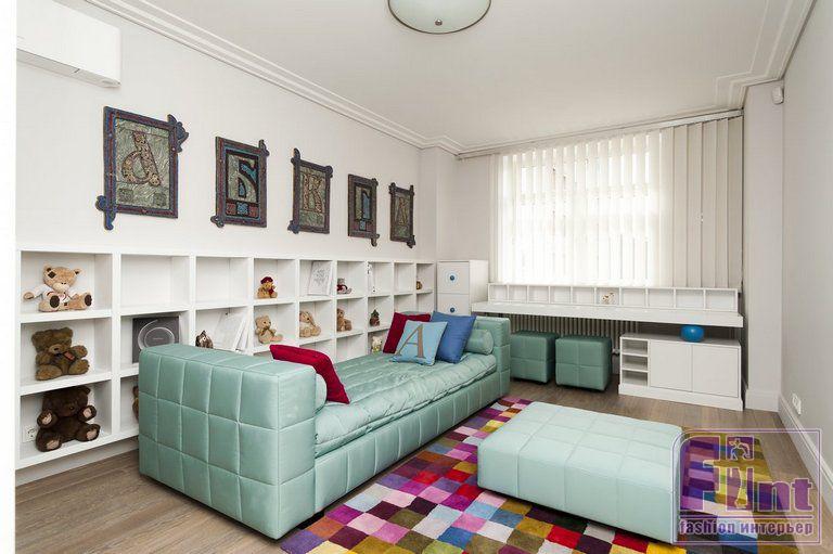 Четырехлетняя хозяйка квартиры оказалась страстной собирательницей мягких игрушек. Специально для неё дизайнер спроектировала детскую с множеством открытых и закрытых мест хранения. Для семилетнего мальчика было решено разработать многофункциональную комнату «на вырост» с отдельной зоной для занятий уроками. В проекте использовалась кровать бренда Frauflex.