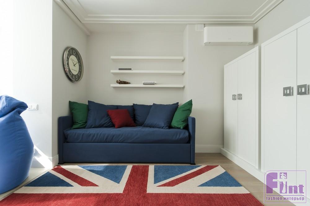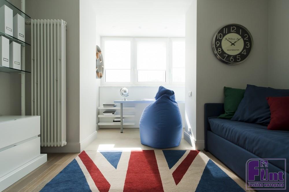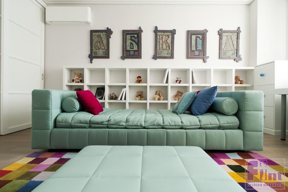 Четырехлетняя хозяйка квартиры оказалась страстной собирательницей мягких игрушек. Специально для неё дизайнер спроектировала детскую с множеством открытых и закрытых мест хранения. Для семилетнего мальчика было решено разработать многофункциональную комнату «на вырост» с отдельной зоной для занятий уроками. В проекте использовалась кровать бренда Frauflex.