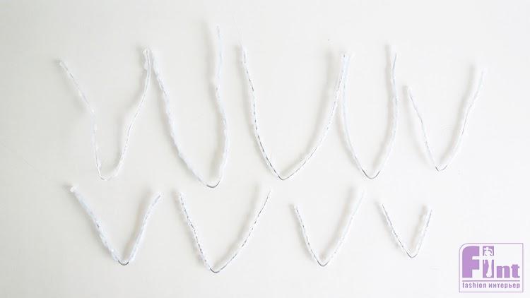 1. Разрежьте проволоку на несколько кусочков разной длины. В данном примере их длина варьирует от 10 до 40 см. Согните каждый кусок приблизительно пополам.