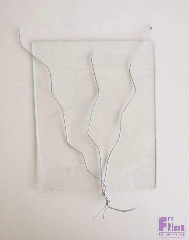 1. Отрежьте 3 куска длинной проволоки, каждый длиной 30 - 35 см и скрутите их концы между собой.