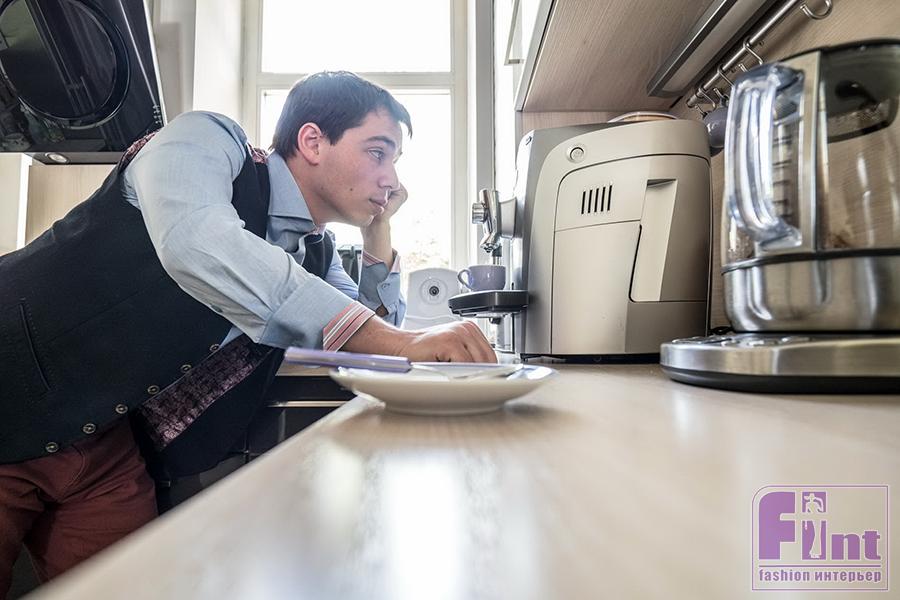 — У меня довольно стандартный набор, который есть, наверное, у всех: плита, духовой шкаф, кофемашина и электрочайник. Самое необычное и экзотическое у меня на кухне — термомикс. Это прибор, в котором можно размешивать пищу и тут же производить её термообработку. В нём можно делать различные овощные коктейли, пюре и так далее. Это вкусно и полезно.