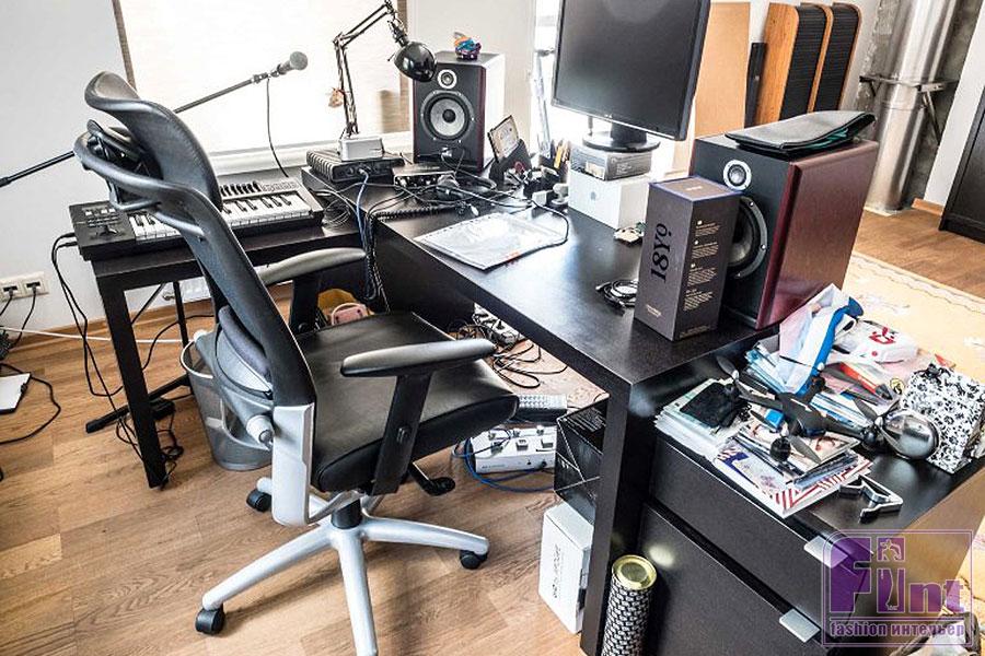 — Вся мебель в доме появилась по-разному. Что-то привозили из других стран или городов, что-то делали на заказ, что-то я находил в столичных магазинах. Как вы заметили, мне по душе определённый минимализм. Я люблю открытые пространства и когда в вещах есть свой порядок. Хотя, кстати, в кабинете у меня дикий бардак. Но я бы назвал это художественным беспорядком — при этом я всегда знаю, где и что у меня лежит.
