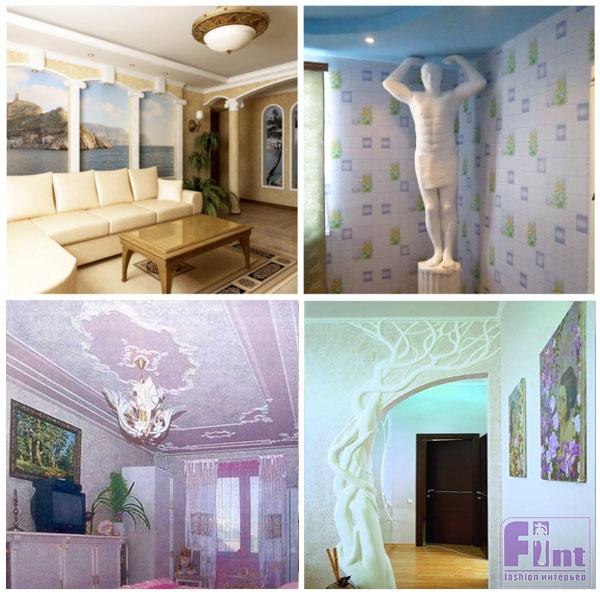 Во многих домах сохранилась старая лепнина и это неоспоримое преимущество квартир, но как быть, если в новостройке нет вожделенной лепнины? В строительном магазине можно найти пластиковые карнизы, молдинги, потолочные розетки, колоны и пилястры. Существуют варианты для одиноких - пластиковые ангелочки и атланты. Последние особенно органично дополняют интерьер типовой квартиры. Раньше атланты держали небосвод, а теперь поддерживают многоуровневый потолок. Красота!