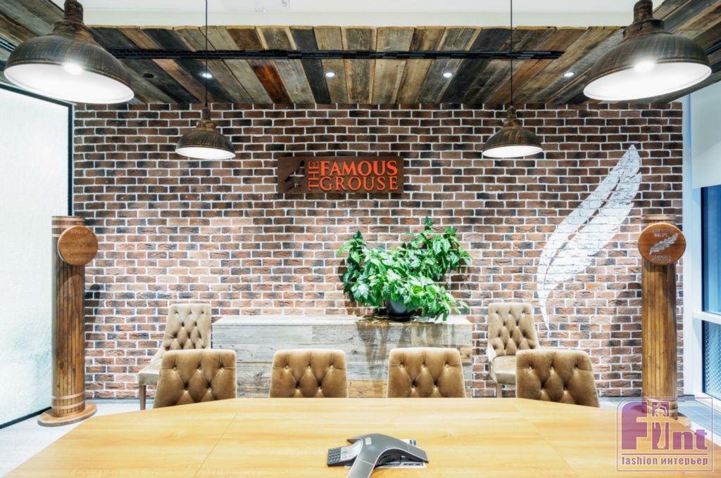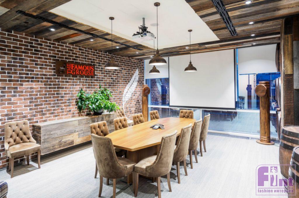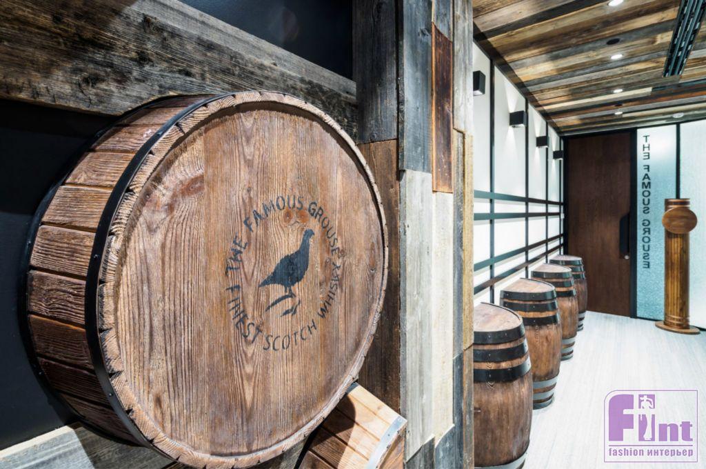 На стенах переговорной, посвящённой традиционному шотландскому виски The Famous Grouse, закреплены дубовые бочки, в которых выдерживались лучшие сорта напитка.