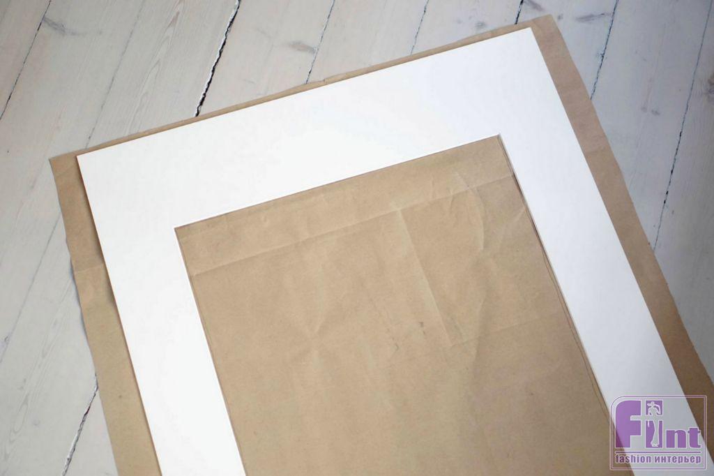 Начните с измерений. Вырежьте из плотной бумаги прямоугольник, подходящий по размеру к вашей рамке. Если используете паспарту, то всё равно отрежьте прямоугольник по размеру рамы, чтобы его края были скрыты под паспарту.