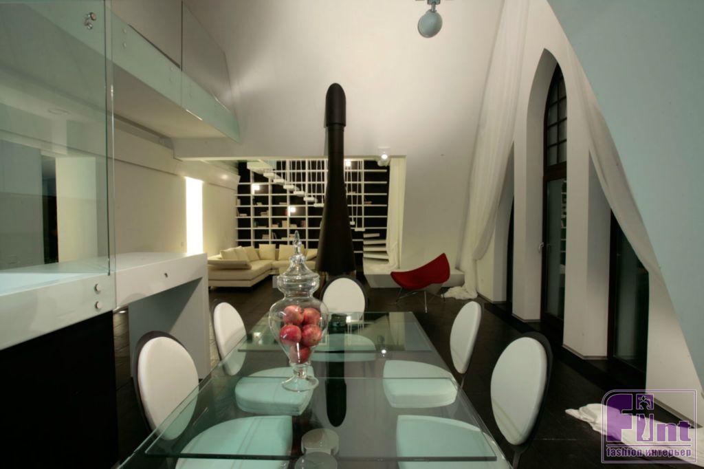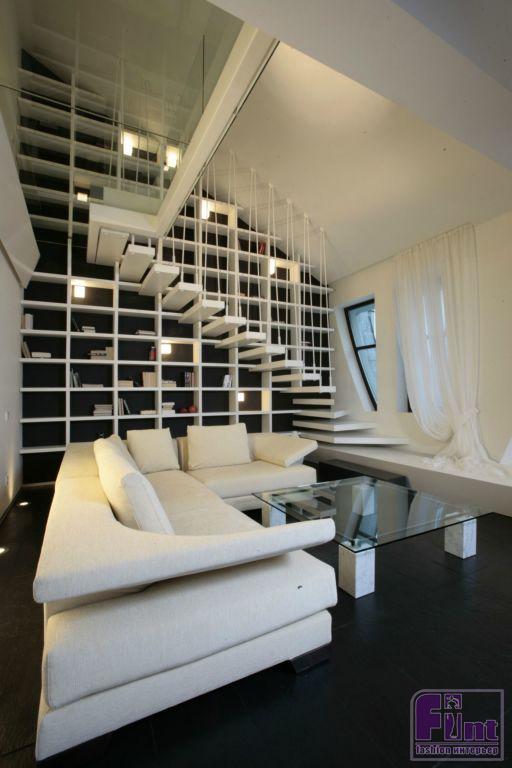 К Александре и Марии обратились хозяева просторной квартирой на последнем этаже дома, стилизованного под северный модерн. «Мы не впервые работаем над жилым объектом для этой семьи, поэтому взаимопонимание возникло ещё на ранней стадии, — рассказывает Александра. — Основное пожелание заказчиков — максимально использовать высоту и необычную форму помещения».