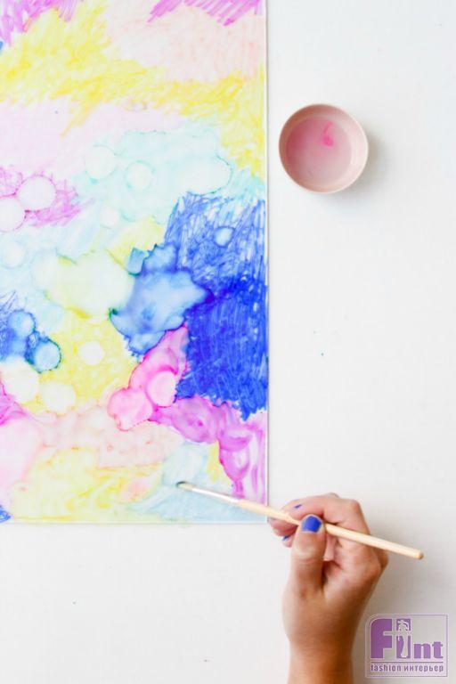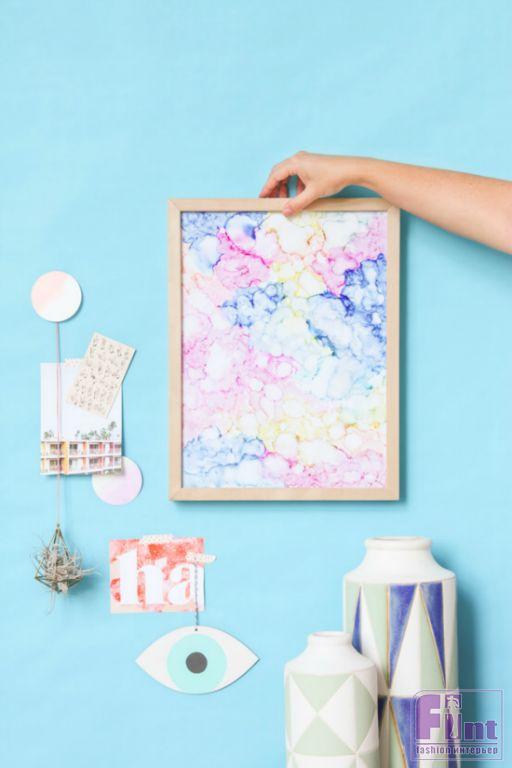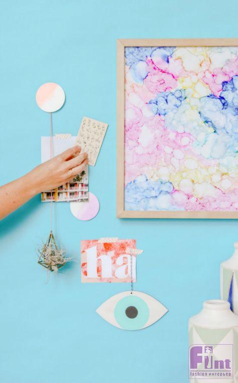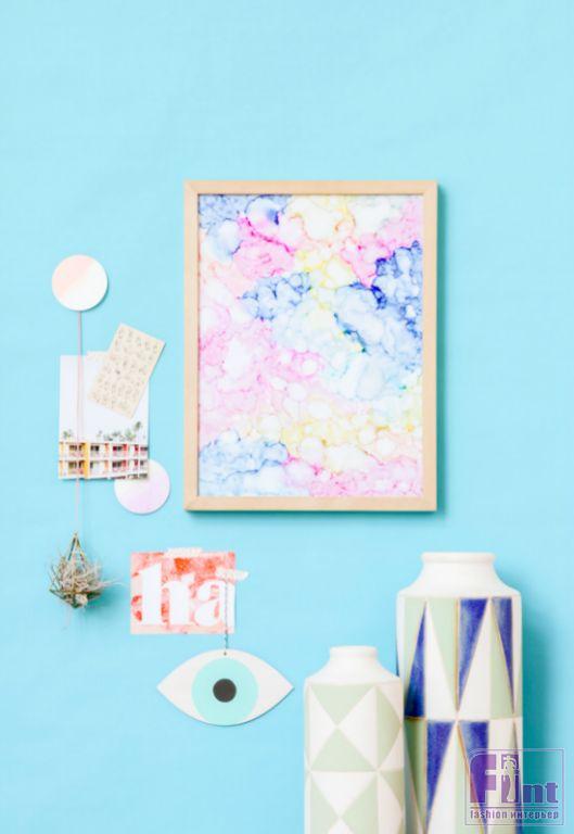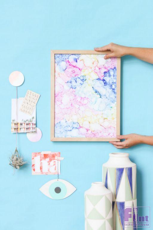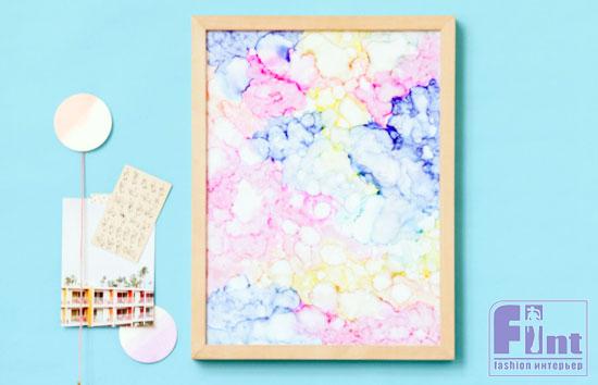 Помните, как в детстве, когда фломастеры ещё были в дефиците, мы «заправляли» их спиртосодержащими жидкостями: водкой, одеколоном и просто спиртом? Если в фломастер налить слишком много такой жидкости, с его стержня капали цветные капли и расходились по бумаге красивым ореолом. Сегодня мы будем использовать эту технику родом из детства, чтобы создать прекрасную абстрактную картину своими руками и украсить этим рукотворным произведением искусства свой интерьер.