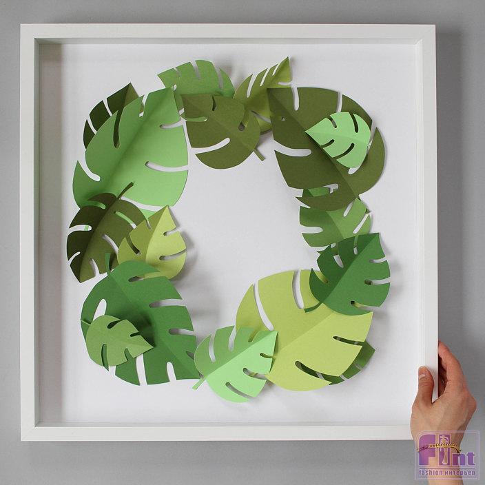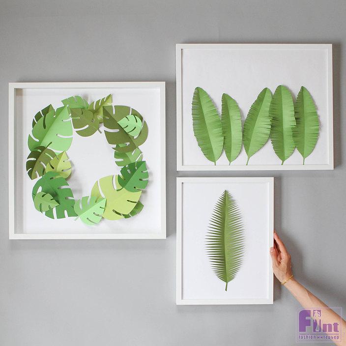 Вот и наступили холода, и снегом завалило половину России. В такие дни, когда за окном метёт вьюга, а столбик термометра сваливается в глубокую минусовую пропасть, как никогда скучаешь по теплу, яркому солнцу и сочной зелени. И если вернуть тёплые дни посреди зимы можно лишь в сказке, то сочную тропическую зелень нам вполне по силам организовать самостоятельно и без особых затрат. Сегодняшний мастер-класс расскажет, как можно невероятно просто сделать своими руками стильное настенное 3D-панно, украшенное стилизованными листьями тропических растений и пальм.