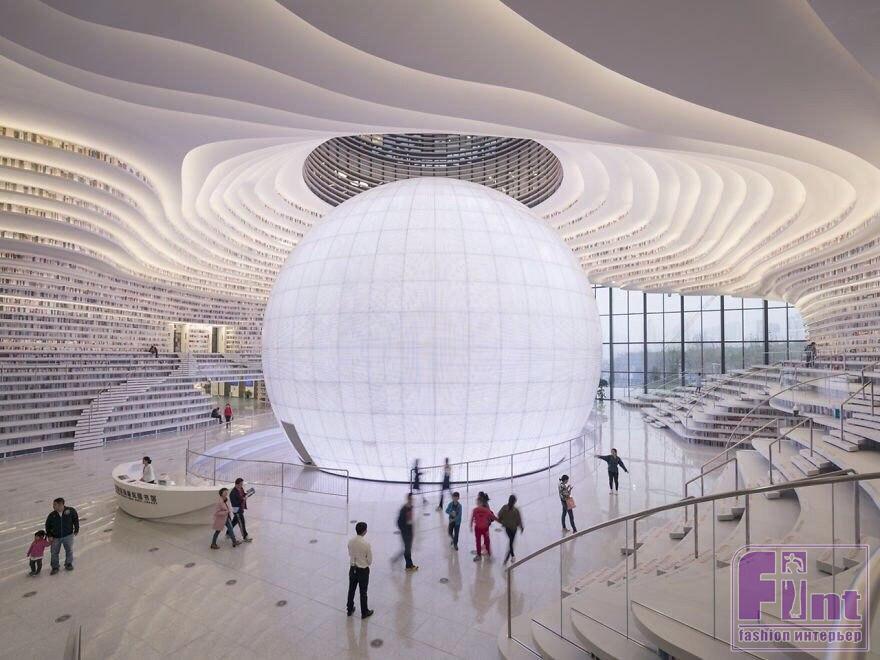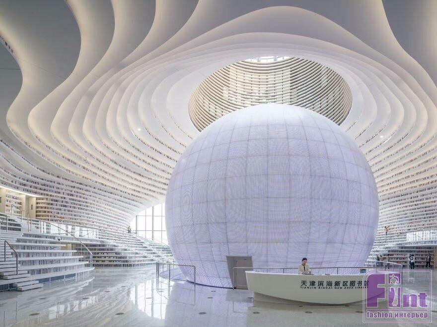 Мало кто любит, когда во время чтения на него смотрят другие люди. Но в случае с этой библиотекой в отношении данного правила можно сделать исключение. Как видно на фото, здание отличается невероятным дизайном. А в его центре расположена огромная сфера, похожая на гигантский зрачок. Фасад здания имеет оригинальное остекление в форме человеческого глаза, и при взгляде с улицы сквозь фасад отлично просматривается сфера-зрачок, поэтому библиотека и получила своё название «Око Бинхай».