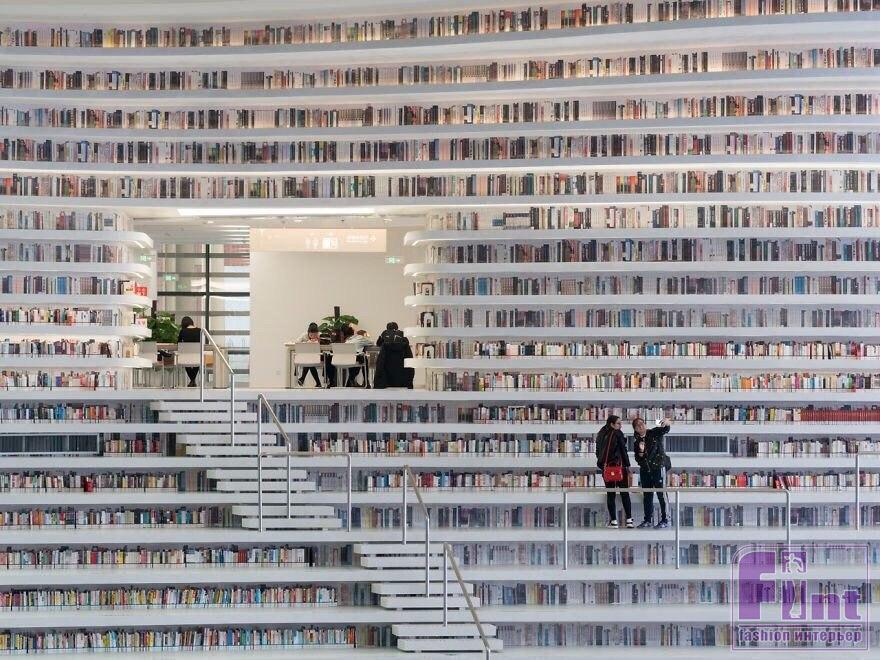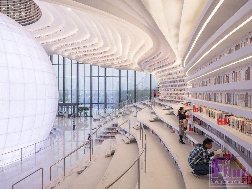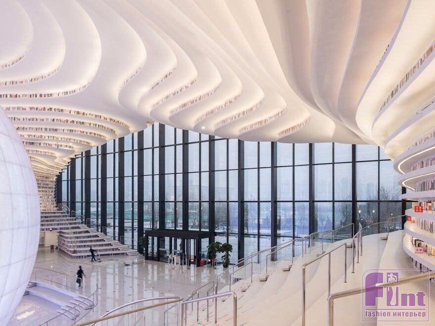 Пятиэтажная библиотека, спроектированная голландской дизайнерской фирмой MVRDV в сотрудничестве с Институтом градостроительства и дизайна города Тяньцзинь (TUPDI), расположена в культурном районе Бинхай в Тяньцзине. В библиотеке есть читальный зал на первом этаже, конференц-залы и офисы в средних секциях, помещения для встреч и компьютерные и аудио-комнаты наверху.