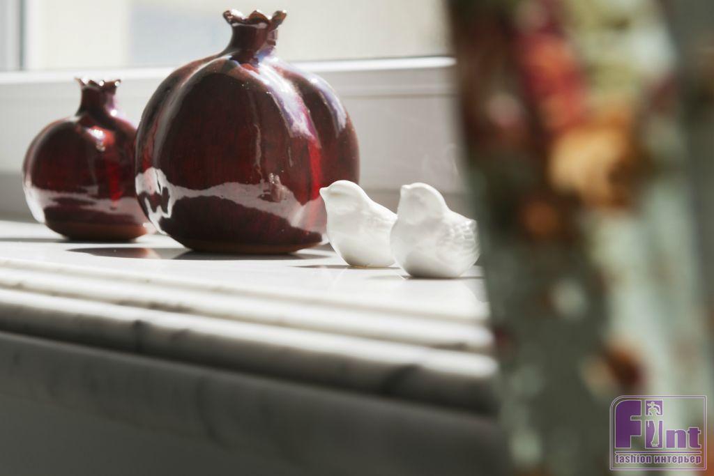 Единственным подходящим решением стала полная перепланировка — благо, в помещении отсутствовали несущие стены. Когда работы были завершены, в обновлённой квартире появилось большое объединённое пространство из прекрасно приспособленных для жизни помещений. Неповторимый дух сталинской архитектуры хотелось сохранить, поэтому характер интерьеру придали с помощью различных предметов мебели и декора. Так, в гостиной интерьер дополнили: широкий белый плинтус, филёнчатая белая мебель, льняной диван с декоративными подушками, бельгийский дубовый письменный стол и чешская винтажная люстра, доставшаяся в наследство от бабушки. Сохранению духа эпохи постройки дома способствовали и обновлённые подоконники из натурального мрамора, установленные во всей квартире.