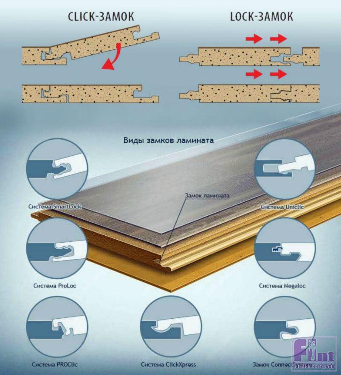 Выбирая ламинированное напольное покрытие, редко кто понимает, что виды замков ламината определяют его качество. Именно они отвечают за зазор между панелями, отсутствие или наличие скрипа, расхождение швов, ровность поверхности. Поэтому приобретая ламинат, следует внимательно изучить не только его характеристики, но и способ укладки, тип сцепления. На сегодняшний день существует 8 основных типов замков, но практически все они основаны на системе шип-паз. Отличие составляет профилирование системы замка. Условно разделяют все замки ламината для пола на две группы по принципу действия Lock и Click. Первая группа сравнительно недорогая, обеспечивающая вполне надёжное сцепление. Вторая относится к дорогому сегменту, но сцепление и качество получаемой поверхности будет высокого уровня. Плюсы и минусы имеет каждый вид соединения. Для кого-то важна цена, а кому-то высокое качество, надёжность. Если сравнивать, что лучше Lock или Click, с точки зрения демонтажа-монтажа, то первая система более подвержена разрушению крепёжных профилей.