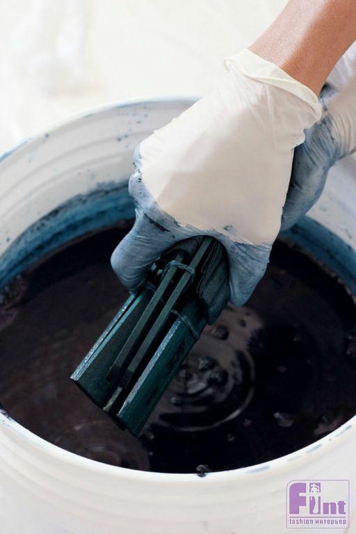 Шаг 3. Окрашиваем ткань. Поскольку на этом этапе начинается самая «грязная» работа, следует надеть одноразовые резиновые перчатки. Аккуратно опустите салфетки в ёмкость с краской и засеките время, указанное на упаковке с краской, необходимое для окрашивания.