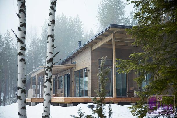 Идеальный участок для дома нашли в Пуумале, в двух шагах от того места, где Хаапасало в детстве учился плавать. Тихий уединенный уголок на достаточном удалении от соседей. Дом построили на берегу, у самой воды. Такое расположение было продиктовано рельефом — крутым каменистым склоном холма. Из-за этой особенности кажется, что широкая терраса дома ведёт прямо в озеро Сайма — удивительное впечатление.
