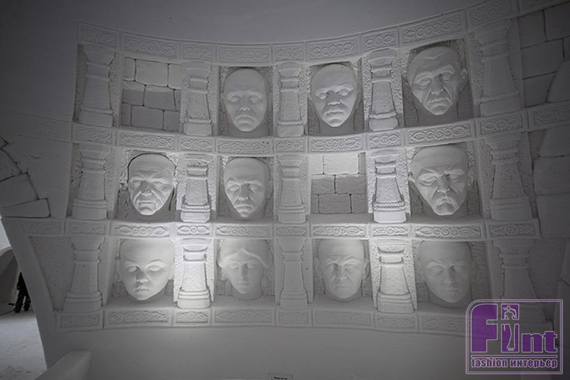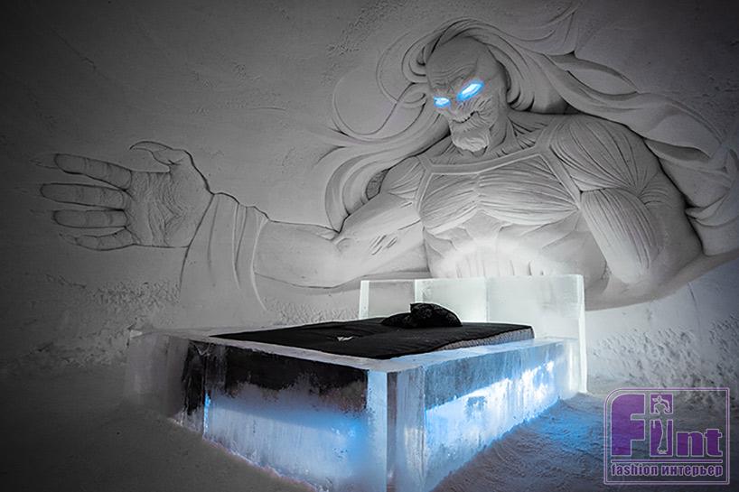 На стене в трёхместном семейном номере дизайнеры и художники создали очень реалистичный барельеф лютоволка, а за порядком в баре следит ледяной дракон-вихт. Одна из самых впечатляющих скульптур отеля по праву можно назвать образ Короля ночи со светящимися глазами. Чтобы столы в ресторане и барная стойка не растаяли от тепла человеческих тел, они снабжены специальными каменными «салфетками», на которых подаются блюда и сервируется завтрак.
