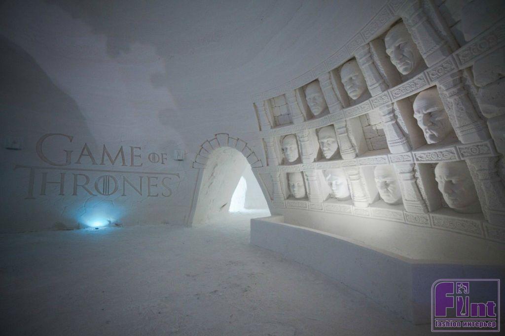 В Финляндии, на территории гостиничного комплекса Snow Village открылся тематический отель по мотивам культового сериала «Игра престолов». Построенный почти исключительно из снега и льда, комплекс включает в себя 24 номера, кинозал, ресторан, бар и даже часовню для желающих обвенчаться.