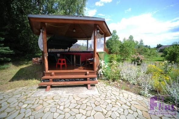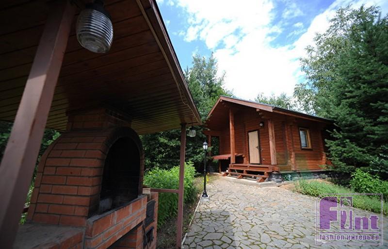 Вокруг дома организована большая терраса в техасском стиле, на которой можно отдыхать тёплыми вечерами с друзьями или в кругу семьи. Помимо большого коттеджа в два этажа на участке имеется аккуратный искусственный пруд, просторная беседка, небольшой мангал под навесом, где хозяин и его друзья жарят шашлыки, а также детская площадка.