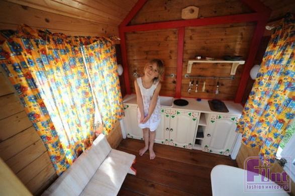 Шикарную детскую площадку дополняет детский садовый домик в стиле Барби, построенный для дочки Максима Таисии. В нём стоит игрушечная кухонная плитка, диванчик и стол, поэтому можно считать, что у Таисии есть свой полноценный домик из дерева.