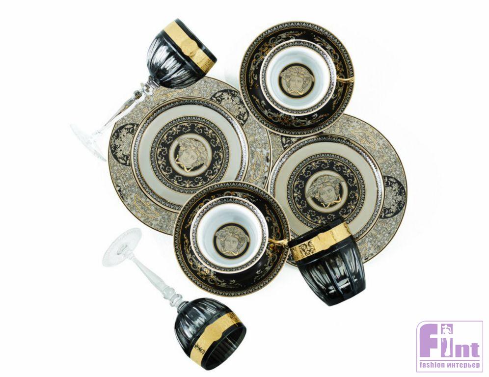 Купить посуду из юбилейной коллекции можно на сайте Versace. Тарелки стоят от 52 до 420 евро, чашки — от 169 до 180 евро.