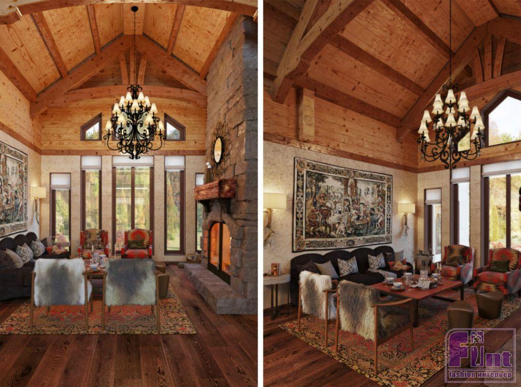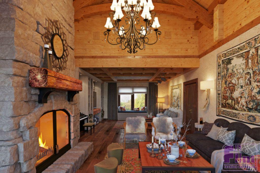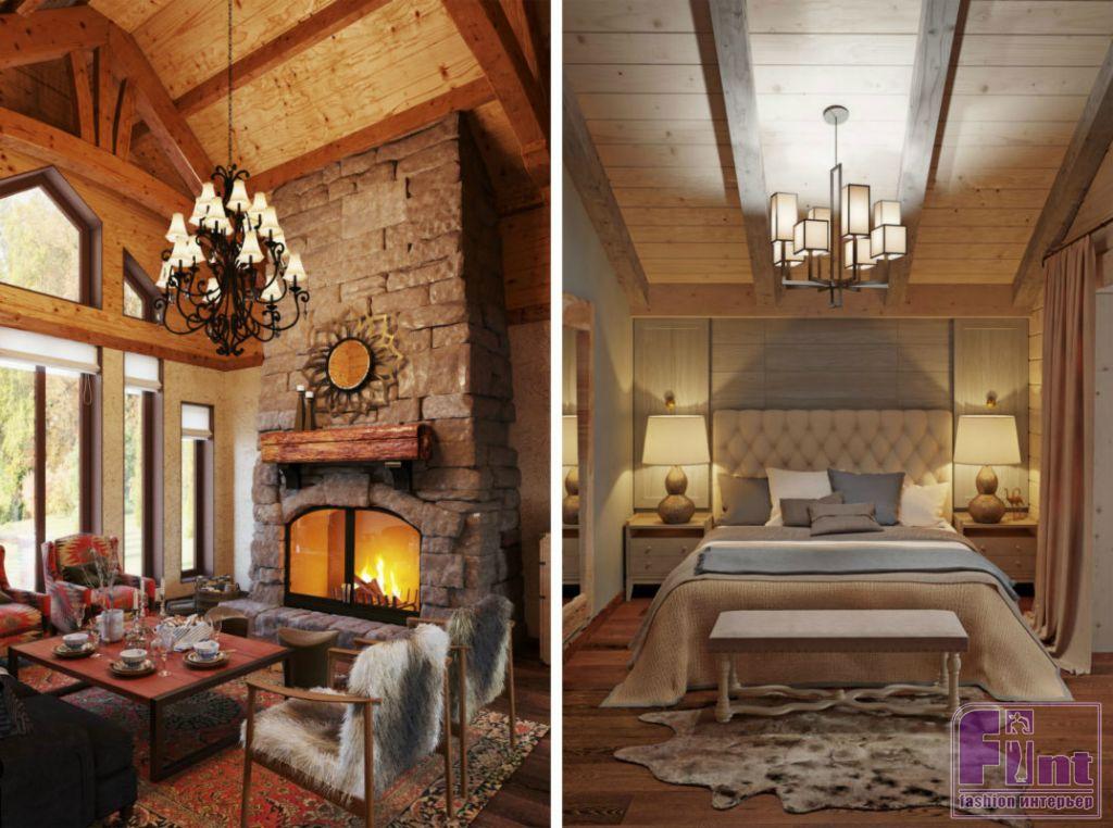 В проекте были использованы исключительно натуральные материалы: дерево и камень. Все столярные изделия были выполнены на заказ. Особое внимание дизайнер уделила освещению, за которое отвечает масса самых разнообразных потолочных и настенных светильников, органично вписанных в выбранное стилевое решение для проекта шале. Красивый интерьер, не лишенный функциональности, обеспечивает клиентам возможность комфортного проживания в доме на постоянной основе. Дизайн в стиле альпийского шале позволяет расслабиться и быть ближе к природе.
