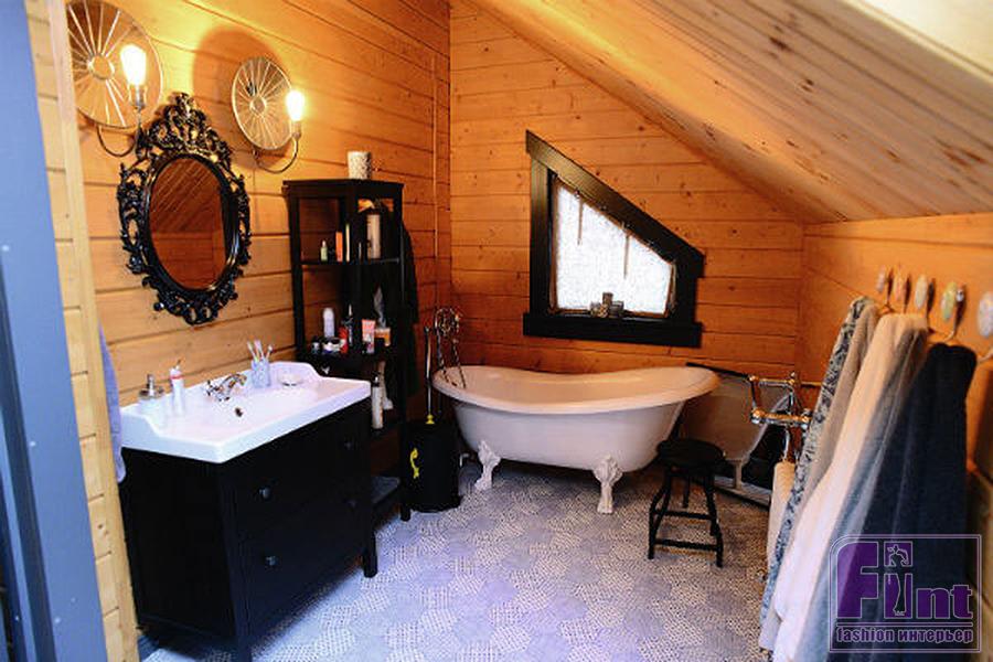 Интерьер загородного дома семьи Дружининых можно было бы признать вполне классическим, если бы не яркая натура хозяина дома, которую не может устроить строгость классического стиля. Так в доме появилась шикарная ванная комната в викторианском стиле и яркий акцент на кухне – стильный розовый холодильник, выгодно оттеняющий кухонный гарнитур серого цвета. Невозможно пройти мимо необычного дизайнерского решения семьи Дружининых, которое они применили в прихожей: в роли потолочного светильника выступает… каноэ! Самое настоящее деревянное каноэ, которое закреплено на потолке и снабжено парой лампочек.