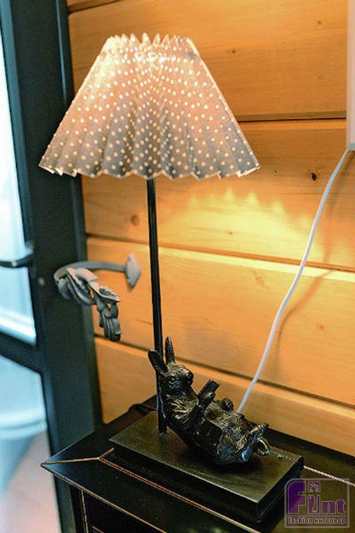 «Слева от дома место для посадки деревьев и для небольшой парковки, на ней может поместиться несколько автомобилей, – продолжает хореограф. – Справа большая лужайка, на которой мы летом играем с мальчишками в футбол, загораем и смотрим кино под открытым небом. Позади буквой Г расположились баня и сарай. Несмотря на невысокий забор, чувствуем мы себя вполне уверенно и защищённо. Оттого и прозвали нашу дачу «Заячьей норой». Этот зверь присутствует в доме в самых разных ипостасях: в дверном кольце, где он убегает от лисы, в крючках, дверных ручках, зажимах для штор… В каждой комнате есть хотя бы один длинноухий. Они не всегда на виду. Их интересно отыскивать».