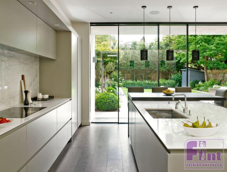 Замечено, что в северных странах предпочитают большие панорамные окна и даже целые стеклянные стены, на которых практически не используют текстиль. Но и в наших частных домах нередко наблюдаются большие панорамные окна. В их случае шторы станут лишь преградой красивому виду и стилевому решению интерьера.