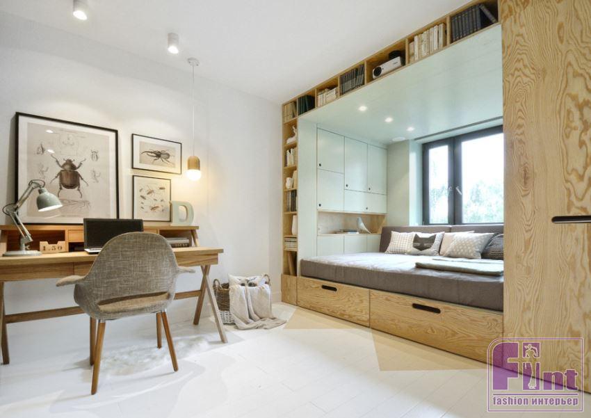 Унылые пластиковые подоконники в современных квартирах вряд ли подходят для приятного времяпрепровождения. Хотя, если задуматься, ведь ничто не мешает нам сделать из подоконника кушетку и оборудовать удобную и красивую зону отдыха. Или вовсе выстроить вокруг окна «комплекс» из кровати и стеллажей, сделать мягкую лавочку. Шторы в таком случае совершенно не обязательны.