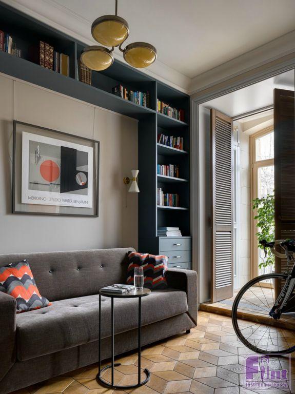 Раньше это была коммунальная квартира: на полу в гостиной лежало неровное, напоминающее ковролин покрытие; на стенах красовались старые обои тёмно-зелёного цвета, а на кухню было страшно смотреть. Но всё компенсировало расположение жилья. Квартира с высокими потолками находится в сталинском доме на Фрунзенской набережной, с окнами в зёленый двор. За реализацию проекта полной реконструкции квартиры взялись дизайнеры Елена Минчева и Алёна Нагаева из студии LABuro.