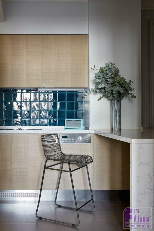 Более серьезные изменения произошли в «мокрых» зонах. Дизайнеры поменяли местами кухню и ванную комнату. Последняя заняла помещение с выходом на балкон. «Хозяин сразу сказал, что готовит не очень часто, а ванну принимать любит», — вспоминает Елена. Технологических проблем со сменой зон не было. Все подключения в квартире идут от одного стояка, который расположен между кухней и ванной комнатой. Отдельные вопросы могли коснуться согласования перепланировки, но этим занимался сам хозяин квартиры. Проверка временем показала, что кухня без окна стала самым популярным местом в квартире. Все, кто приходит в гости, любят присесть за барной стойкой.