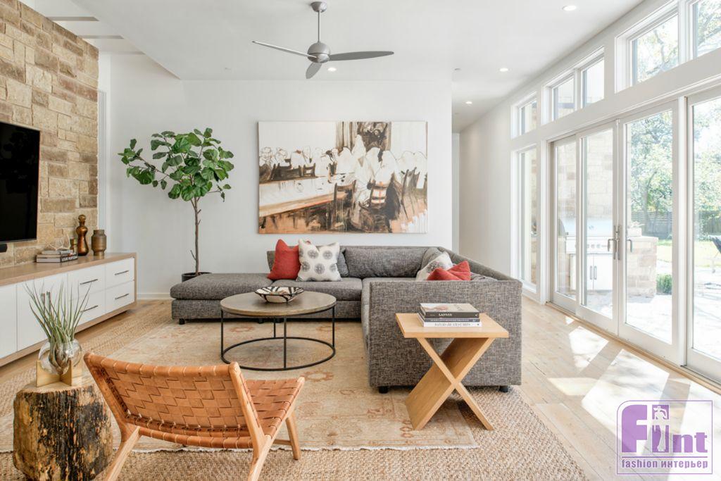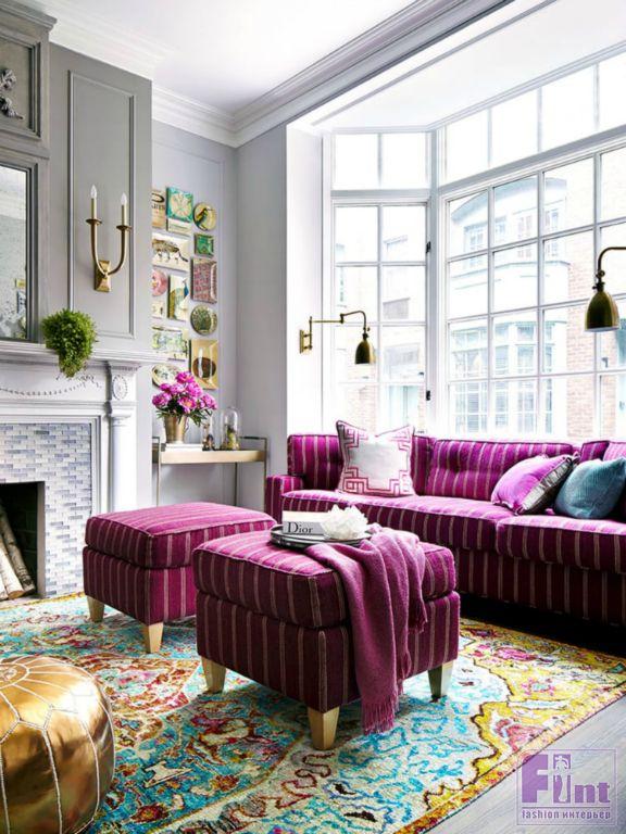 Также с помощью контрастного ковра можно разделить комнату на функциональные зоны. Яркий акцент станет фокусной точкой интерьера и не останется незамеченным.