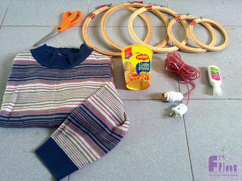 Мечтаете о стильном подвесном светильнике, но цены в магазинах кусаются? Да и февральские и мартовские праздники наверняка ударили по бюджету. Значит, настало время для нестандартных решений! Практически в каждом шкафу можно найти старый, видавший виды свитер, который и надеть стыдно, и выбросить жалко. Настал его звёздный час! Вы, вероятно, недоумеваете: как именно этот неприглядный предмет одежды поможет вам стать счастливым обладателем нового светильника? Сейчас расскажем.