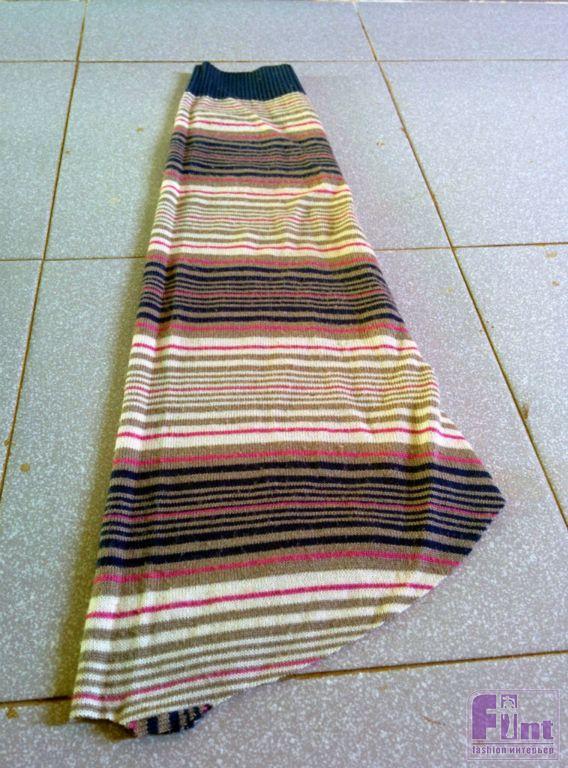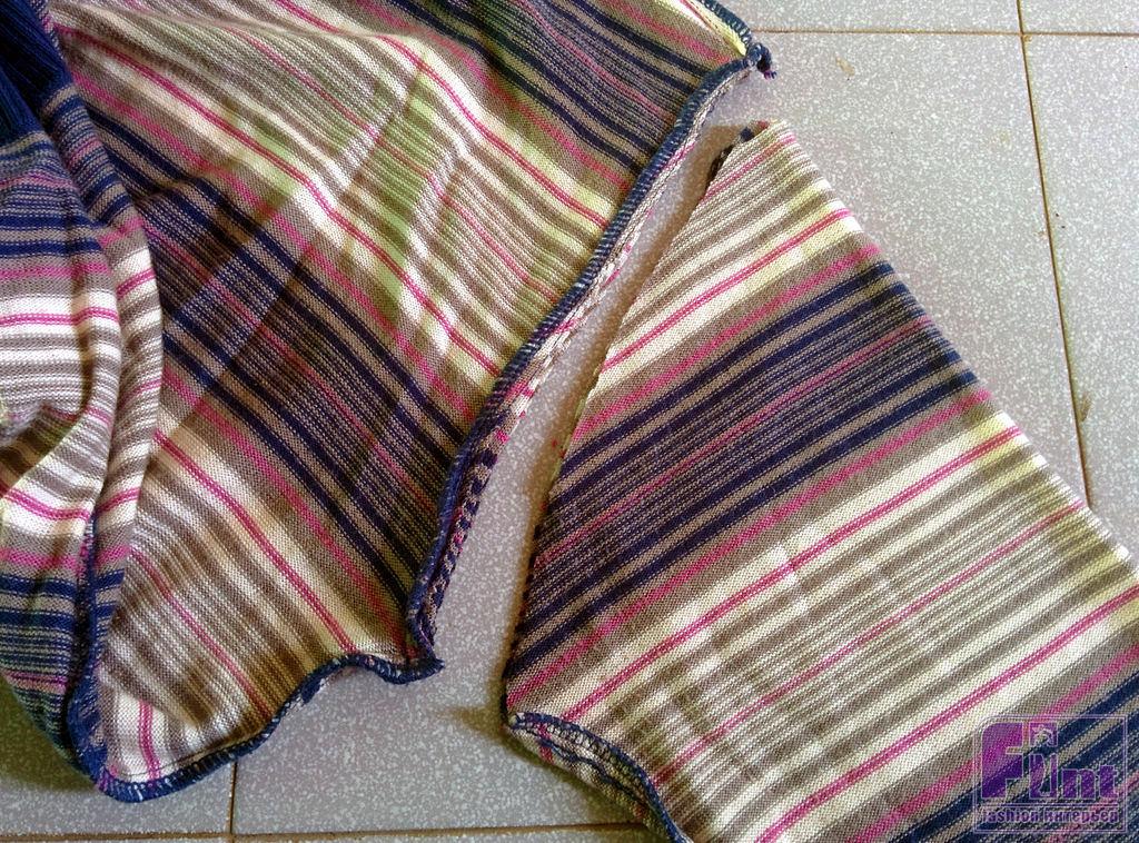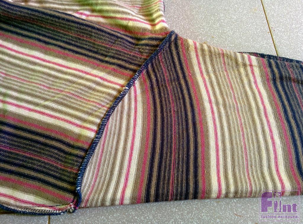 Приступаем к работе. Выверните свитер наизнанку. Отрежьте один из рукавов. Резать следует как можно ближе к строчке. Отложите свитер в сторону, а отрезанный рукав снова выверните, лицевой стороной наружу.