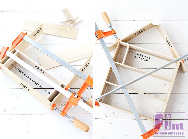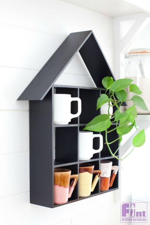 Мы сделали полку с квадратными» ячейками, которые полностью соответствуют нашим кружкам. Если вы планируете хранить на этой полке более вытянутые по форме предметы и посуду, можно изменить схему полки, сделав ячейки прямоугольными. Приятного вам рукоделия!