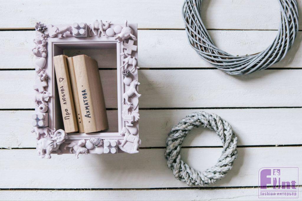 Хоть зверушек из детского набора пластиковых динозавров, как это сделано на рамке для фото — и получить весьма необычный декор квартиры.