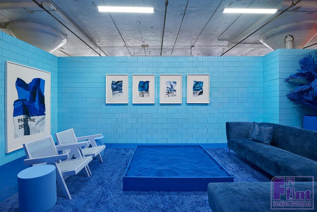 Тщательно подобранная обстановка комнат выглядит вполне реалистичной, хотя художница использовала и неожиданные элементы: поставила в центре гостиной песочницу с синим песком и закрыла одну из стен блестящим «дождиком», постелила на обеденный стол меховую скатерть, отделала полки и кухню искусственным газоном.