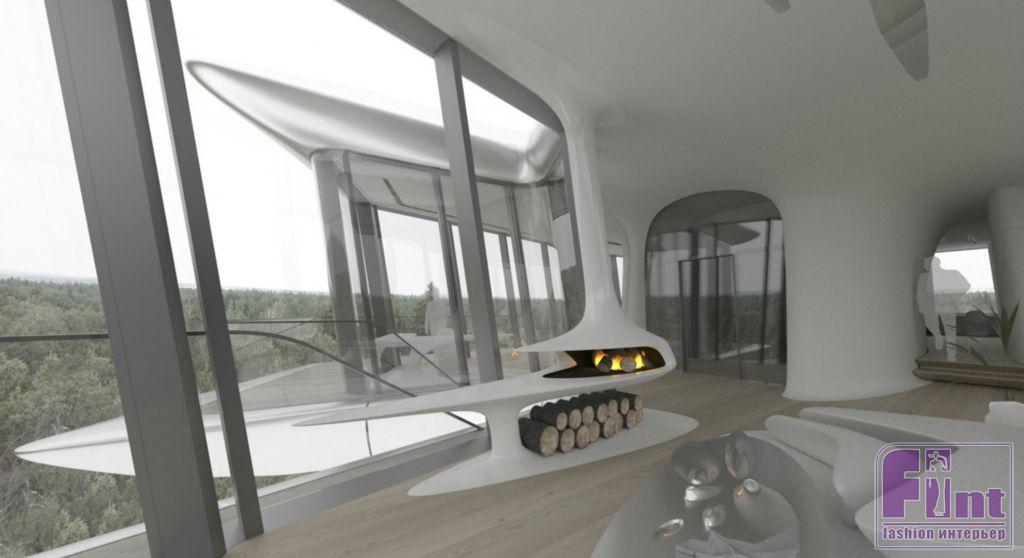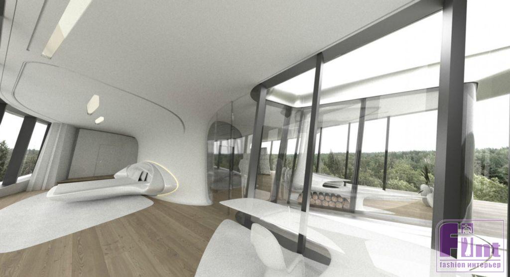 «Я хочу просыпаться и видеть только голубое небо. Никаких соседей, хочу чувствовать себя свободным», — сформулировал свою мечту Владислав Доронин, повстречавшись со знаменитым архитектором в Лондоне. Хадид ответила: «Вы понимаете, что должны быть выше деревьев?» и набросала на салфетке проект будущего «космического корабля», царственно возвышающегося над соснами.