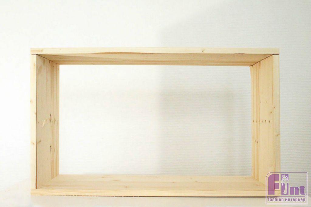 Начинаем с изготовления каркаса. Размеры нашей будущее полки без ножек: 80 см по ширине и 50 см по высоте. Для каркаса нам потребуется две длинные доски и две короткие – для стенок тумбы. Размечаем отверстия, которые помогут нам скрепить детали между собой, и сверлим отверстия сверлом меньшего диаметра, подходящим под саморезы с потайной головкой. На каждую сторону нам будет достаточно 4-х саморезов, чтобы надёжно скрепить стенки, верх и низ тумбы. Также на боковых стенках нам необходимо просверлить отверстия под шнур, с помощью которого мы сформируем внутреннюю полочку. Отверстия нужно проделать посередине боковых стенок, на равном расстоянии друг от друга. Таких отверстий нам нужно проделать 6 штук.