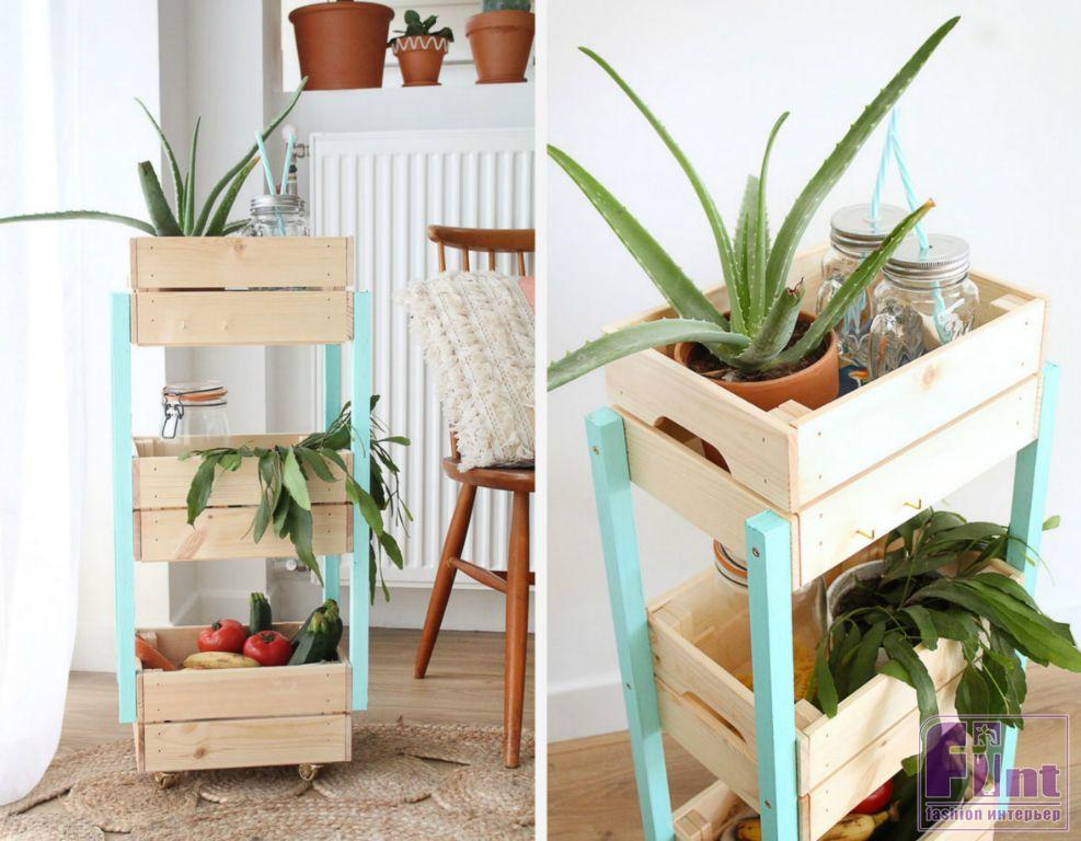 Готово! Наша мобильная подставка для цветов и одновременно функциональная этажерка готова! Осталось наполнить её красивыми живыми цветами в подходящих кашпо и украсить ей своё жильё!