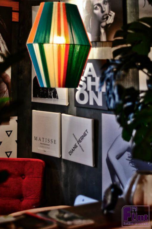 Каждая стена выполнена по принципу «инстаграм бэк». Всё разделено по зонам и имеет общую атмосферу и стилистику, включая коллаж из чёрно-белых изображений. Для этого проекта дизайнер предложил необычное оформление меню – на это раз оно выполнено в объёмном виде, как картина из разноцветных блоков, вызывающих ассоциации с гениальным «Суперматизмом» Каземира Малевича.