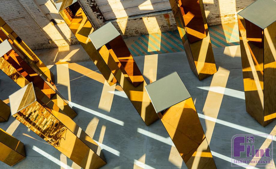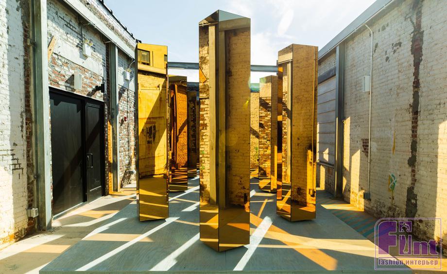 Дизайнеры из бюро United Visual Artists вдохновились небоскрёбами Нью-Йорка и создали дезориентирующую инсталляцию «Spirit of the City». В небольшом бруклинском дворике с кирпичными стенами авторы проекта установили несколько четырёхгранных зеркальных колонн, вращающихся вокруг своей оси. Посетителям предлагается пройтись между ними и увидеть, как в движущихся золотистых зеркалах смешиваются блики света, отражения стен, людей и неба. «Нам хотелось передать чувства, возникающие во время передвижения в таком мощном мегаполисе, как Нью-Йорк, с огромным количеством визуальной информации, которая переполняет, но и заряжает энергией», — объясняют дизайнеры.