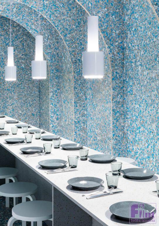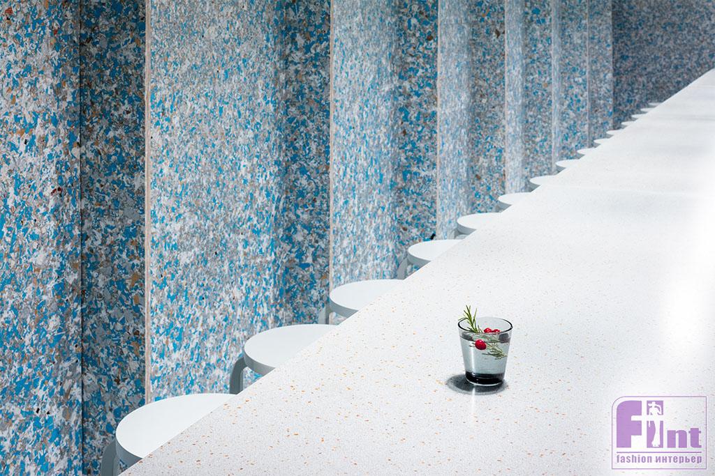 В рамках выставки WantedDesign Финский институт культуры в Нью-Йорке подготовил любопытную инсталляцию на экологическую тему. Проект Zero Waste Bistro задуман совместно с хельсинским рестораном Nolla, который позиционирует себя как первый североевропейский ресторан с безотходным производством. «Мы разработали меню с блюдами из местных продуктов и рационально использовали то, что обычно выкидывается», — говорит шеф Лука Балак. Концепции соответствует и временный павильон бистро, спроектированный финскими дизайнерами Гарри Коскиненом и Линдой Бергрот. Его стены построены из панелей, сделанных из переработанных пакетов TetraPak, а подносы и длинный стол в крапинку изготовлены из переработанного пластика Durat. Знаменитые табуреты по дизайну Алвара Аалто для Artek и светильники финской компании Iittala символизируют качественный долговечный дизайн, который может служить веками.