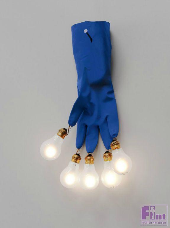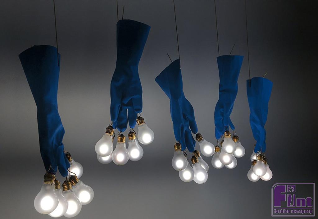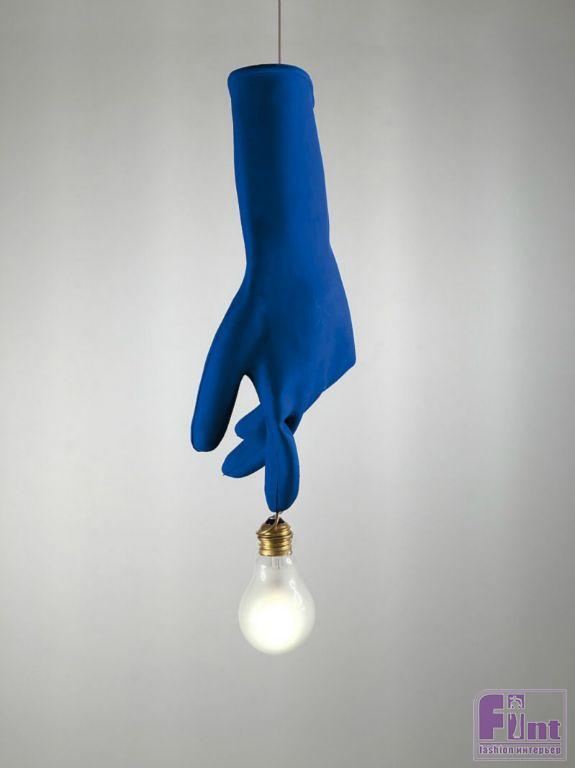 Еще один пример остроумного дизайна — проект Инго Маурера, дизайнера, который производит авангардные и необычные светильники с 1966 года. Новая работа мэтра, показанная в рамках выставки ISaloni, называется «Luzy» и представляет собой подвесные светильники в виде синих рабочих перчаток с лампочками, вырастающими из кончиков пальцев.