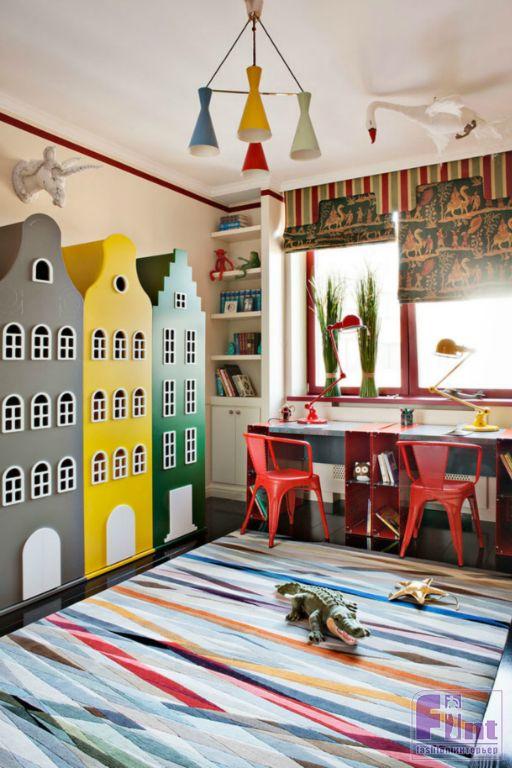 И дело не столько в стиле, сколько в практической необходимости. «Для семерых человек квартира совсем небольшая, сто пятьдесят восемь метров, – объясняет Лиза. – Мы с Сергеем долго думали над планировкой, и в итоге нам удалось вместить двенадцать помещений. Комнаты маленькие, и, чтобы они не казались тесными, почти вся мебель сделана в уменьшенном размере». Единственный предмет, на габаритах которого не стали экономить, это кровать. Она очень широкая и низкая, чтобы хватило места всем детям, и им легко было на неё забираться. По фотографии понятно, сделано это было не зря.
