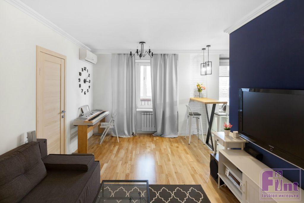 Евгении предстояло оформить небольшую двухкомнатную квартиру на севере Москвы. Заказчиками выступила молодая семья, мечтавшая о современном интерьере с объединённой кухней-гостиной, барной стойкой и удобными системами хранения. «Моя задача заключалась в том, чтобы создать удобную для жизни, светлую и современную квартиру в рамках небольшого бюджета», — поясняет Евгения.