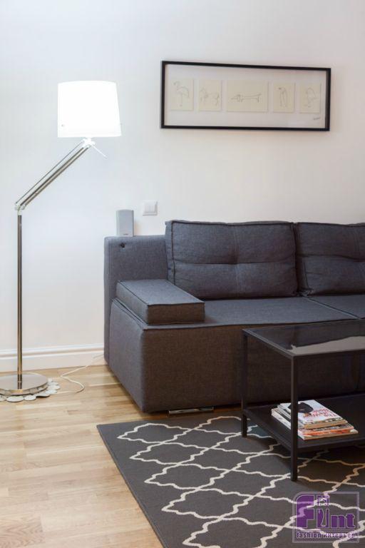 Для того чтобы добавить пространства этой небольшой квартире, дизайнер пошёл на смелый шаг. В квартире разобрали пол и прибавили к высоте помещений целых 15 см. В итоге высота потолков составила 2,6 м. Эффект свободного пространства помогли дополнить крупноформатные зеркала и белый цвет крашеных стен.