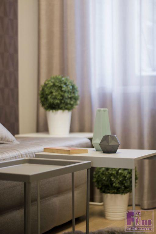 В дизайне нет случайных предметов мебели, все они подбирались с таким расчетом, чтобы не только выполнять определенную функцию, но и быть декоративным элементом в интерьере. Кровать служит в спальне ярким акцентом, а диван в гостиной должен был слиться с фоном. Кроме того, обивка подбиралась с учетом того факта, что в квартире будет проживать собака.