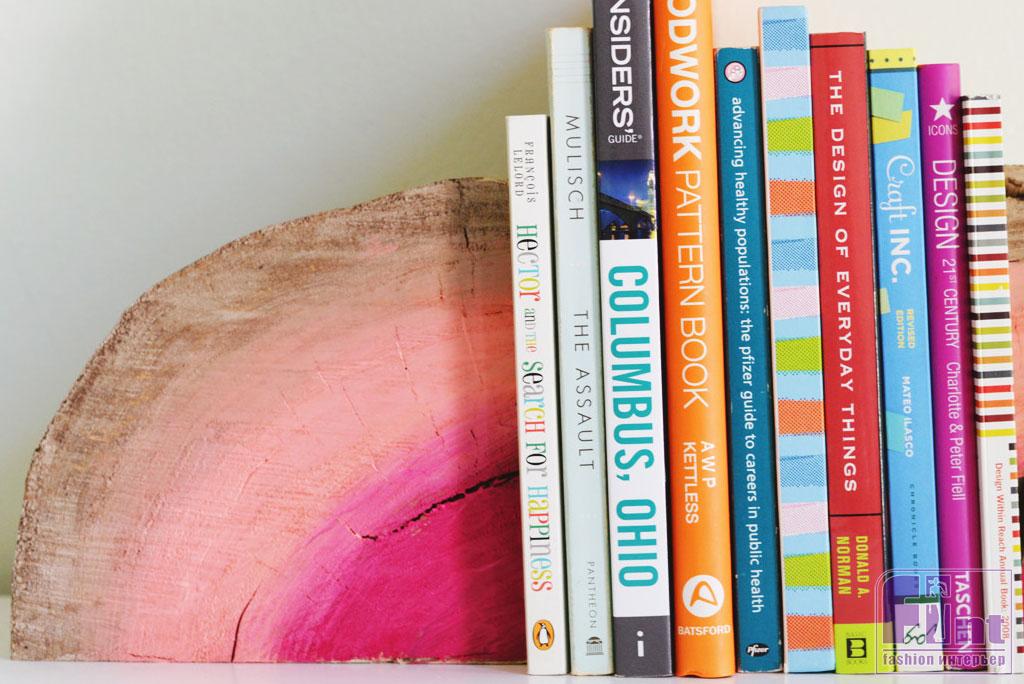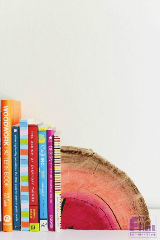 Есть желание добавить цвета и элегантности к пустующей книжной полке или верхней крышке комода? Сделайте необычные держатели для книг своими руками, которые обойдутся вам не дороже 500 рублей, если придётся докупить краски, а то и вовсе бесплатно, если подходящие краски у вас уже есть! В этом мастер-классе мы будем использовать торцевой спил дерева, которые так любят дизайнеры по интерьерам и довольно часто используют этот подаренный природой элемент для создания уютной и комфортной атмосферы в квартире или загородном доме.