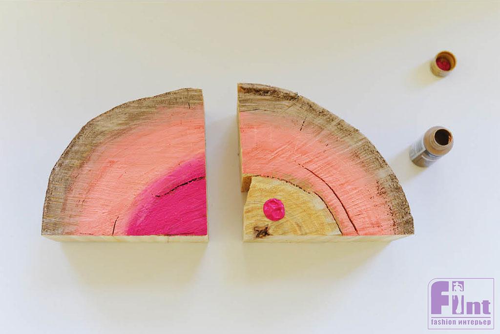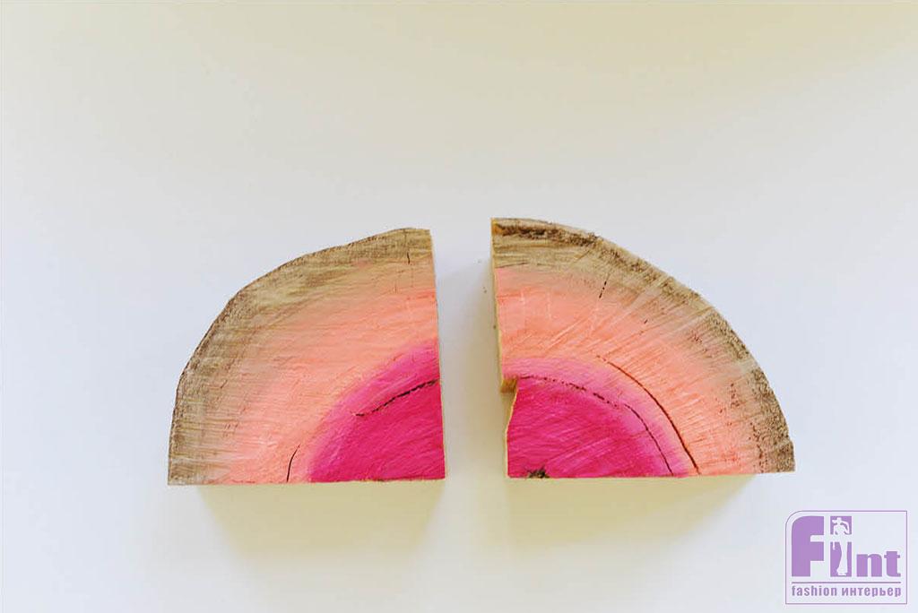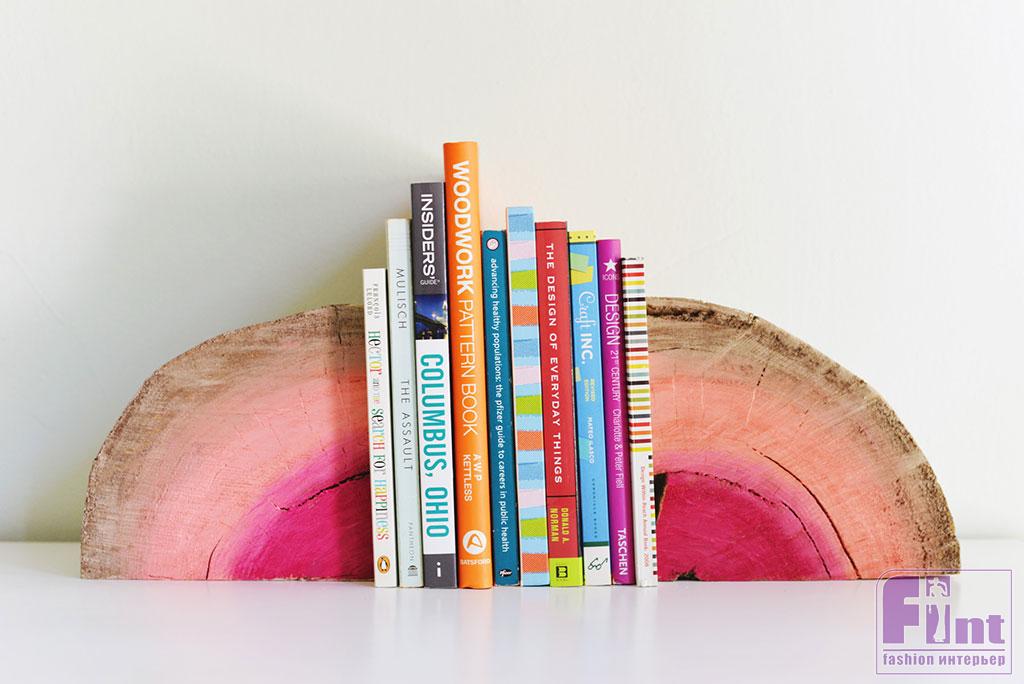Есть желание добавить цвета и элегантности к пустующей книжной полке или верхней крышке комода? Сделайте необычные держатели для книг своими руками, которые обойдутся вам не дороже 500 рублей, если придётся докупить краски, а то и вовсе бесплатно, если подходящие краски у вас уже есть! В этом мастер-классе мы будем использовать торцевой спил дерева, которые так любят дизайнеры по интерьерам и довольно часто используют этот подаренный природой элемент для создания уютной и комфортной атмосферы в квартире или загородном доме.